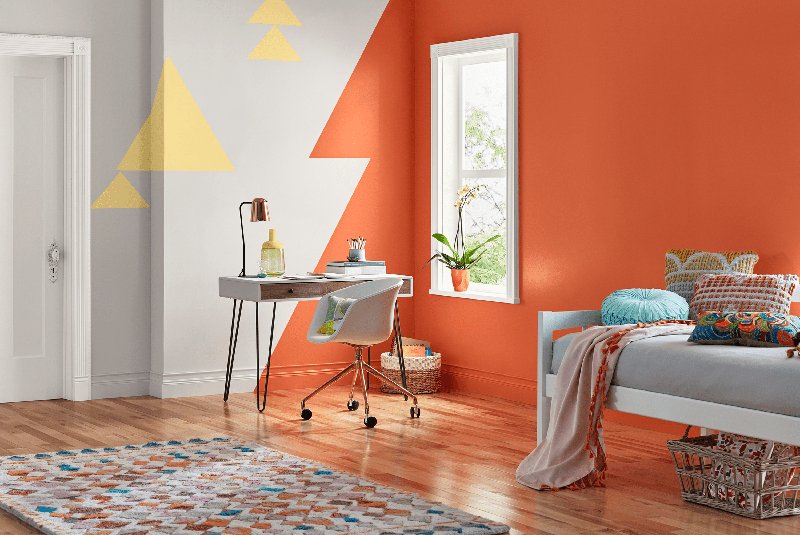 Cam: Màu cam có lẽ là một trong những màu bị hiểu lầm nhiều nhất trong bảng sơn, và hiếm khi được sử dụng. Màu sắc ấm áp, thân thiện và trẻ trung này thực sự lý tưởng cho trẻ nhỏ vì nó được cho là khuyến khích sự tự tin, hướng ngoại và độc lập. Bản chất của màu này cũng khiến trẻ nhỏ và bạn bè của chúng cảm thấy thoải mái, tạo cảm hứng giao tiếp và hợp tác.