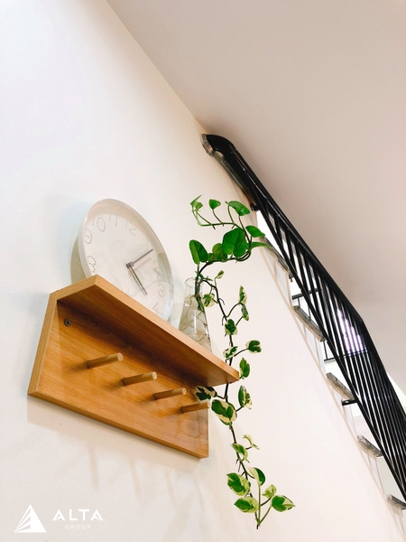 Cầu thang được đặt ngay cạnh lối ra vào, giúp tiết kiệm nhiều diện tích hơn cho ngôi nhà.